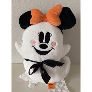 Set Of 2 Disney Halloween Mickey & Minnie Ghost Decorative Sherpa Pillows NEW