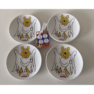 Set Of 4 Disney Winnie The Pooh Halloween Ghost Ceramic Appetizer Plates NEW