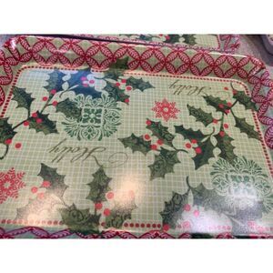 Set Of 6 Kay Dee Holly Melamine Holiday Appetizer Serving Rectangular Plates 6"
