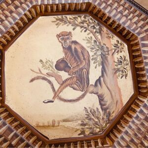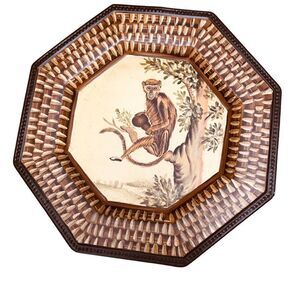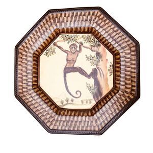 Set Of 2 Toyo Octagon Monkey Decorative Plates Bamboo Look