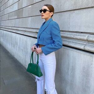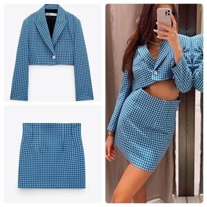 Set ZARA Blazer Cropped Skirt Plaid Bloggers