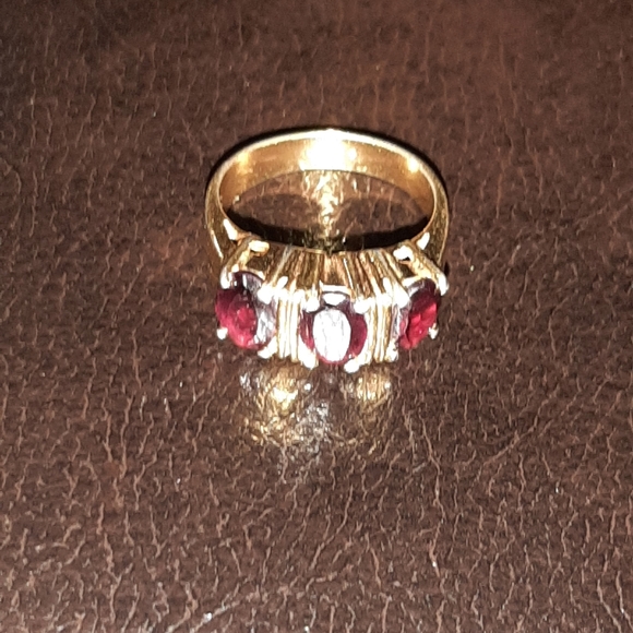 Seta Brand Ruby Red Ring. Gold Tone High End Fashion Jewelry. Vintage