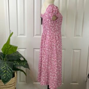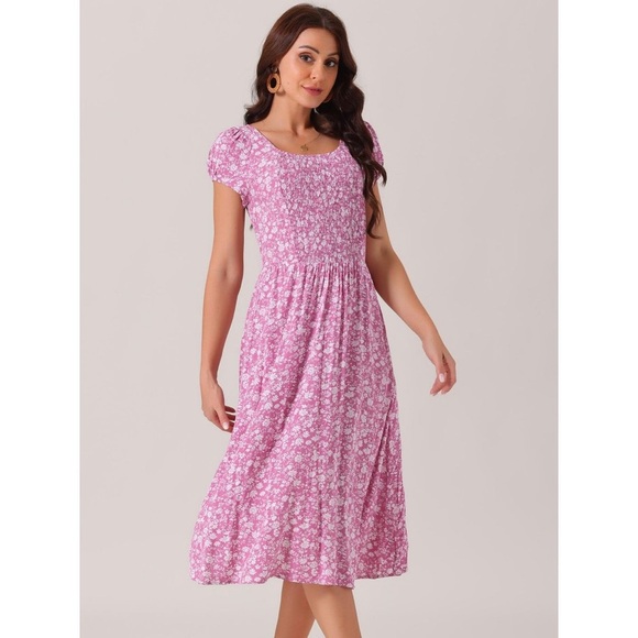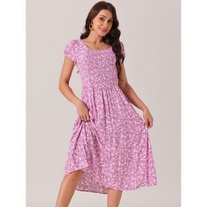 Seta T Women's Casual Floral Crew Neck Cap Sleeve Boho Flowy Midi Dress Size S