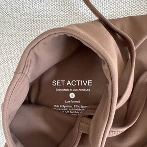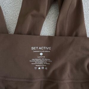Setactive brown sports bra and leggings set. Perfect for workouts. Size small in top and leggings. Luxform