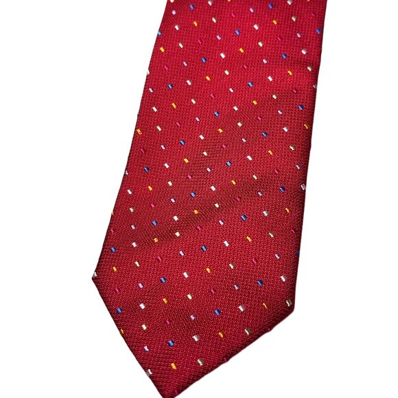Setazone Men's Silk Tie – Red with Multicolor Dotted Pattern