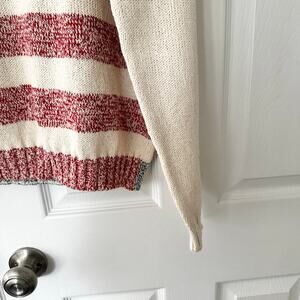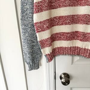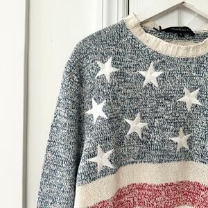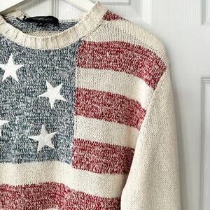 Size medium/ IT50 from Setball. Vintage deadstock. Made in Italy. Cotton silk blend. Cream, red and blue American flag sweater with white embroidered stars. Heathered grainy finish to knit. Amazing quality.