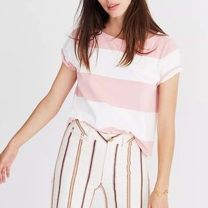 Boxy cool and perfectly cropped, this structured, wide-striped tee has an easy neckline. A total wardrobe staple you can wear with high-rise jeans (or whatever else is in your closet).