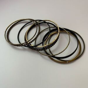 Set of 10 Mixed Black & Bronze Metal Bangles – Boho Layered Look