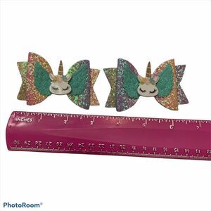 Set of 2 Adorable Iridescent Unicorn Hairbows
