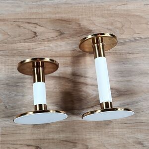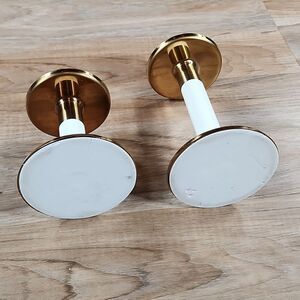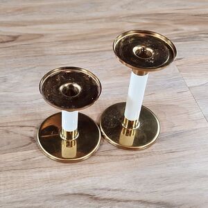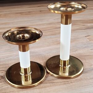 Set of 2 Brass & Ivory Candle Stick Holders, no flaws and will hold pillar candles or small jar candles.