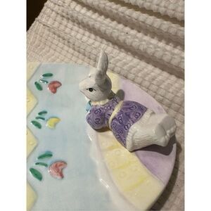 Two adorable vintage Easter egg and bunny plates. Circa 1997. Ceramic. Measures 8” x 7”. No chips or cracks.
