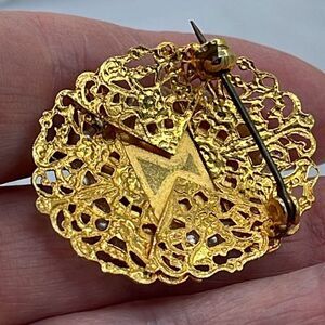 Set of 2 vintage Damask brooches. These are just beautiful. Ornate filigree edges with faux pearl surrounding a beautifully done floral damask centerpiece.
