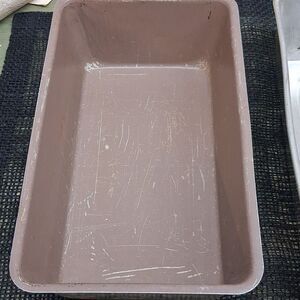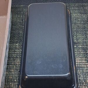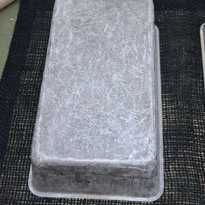 Set of 3 rectangular baking/loaf/bread pans. First one has a brown coating on (teflon?) and does have some scratches in, but would still work for baking things in. The 2nd is a little smaller black coated pan with a few minor knife scratches in, but in good overall condition, and the 3rd pan is in very good condition, and I think is aluminum or stainless steel. All are great to have on hand for making those banana breads, pumpkin breads, sour dough breads, etc. All preowned.