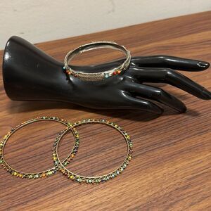 Set of 3 Vintage Bangle Bracelets With Colorful Stones.