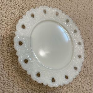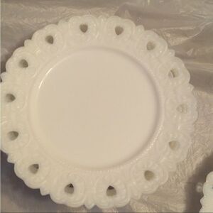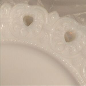 Set of 3 Vintage Opalescent Moonstone Plate With Scalloped Heart Edge 7.5” Milk