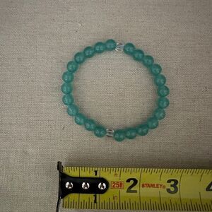 Set of 3 beaded bracelets with silver accents. Teal, green, and pink marbelized. The teal and pink appear to be a Medium. The teal one seems a little larger maybe an L. NWOT never worn