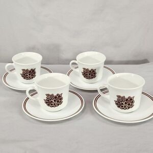 Set of 4 Corelle Batik Coffee Cups & Saucers Vintage Brown Stripes & Flowers