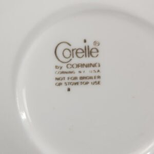This set looks like it was never used. No utensil marks or staining. Cups are floral, saucers have stripes.