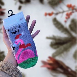 • Set of 4 Pairs of Micro Velour Socks (Umbrella & Flamingo)