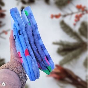 Set of 4 Pairs of Winter Socks for Women, Anti-Slip Purple Gray Fluffy Socks