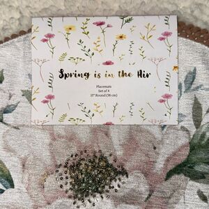 Set of 4 Spring is in the Air White Green Tan Floral Round Beaded Place Mats