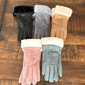 Set of 5 Plush Touchscreen Winter Gloves - Warm Faux Suede & Faux Fur Bundle
