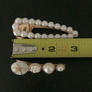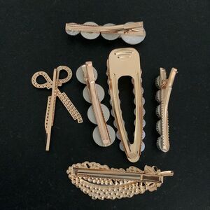 Set of 6 Pearl and Rhinestone Hair Clips Starfish Scissors Feather