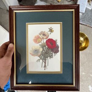 Set of Mid Century Flower Print Wood Gold Frame Vtg Wall Accent Decor 9 X 11
