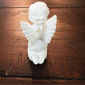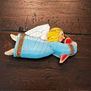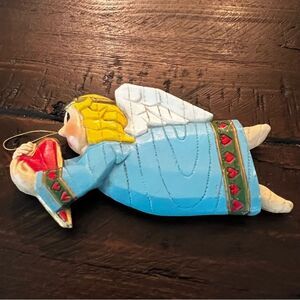 Charming set of seven angel ornaments Includes white and colorful ornaments in blue, pink, and green. The white ones are 3 1/2” tall. The colorful ornaments are 4” long. They are made out of resin. All the ornaments are in very good condition. They will be a great addition to your holiday decor.