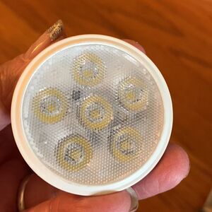 Set of six LED bulbs six watt. See all photos. Purchased for candle warmers but they do not get hot enough to melt the candle. These are new but I do not have original box. Smoke free and pet free home
