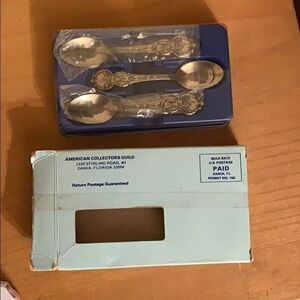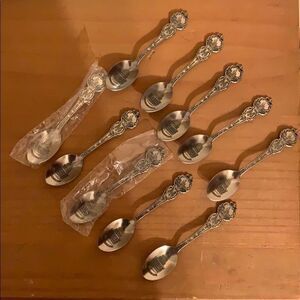 American Collectors Guild, Heritage Collection of American States. Set of 10 spoons showing the Capitol Building. Vintage in box. Approx 4.5” long