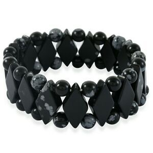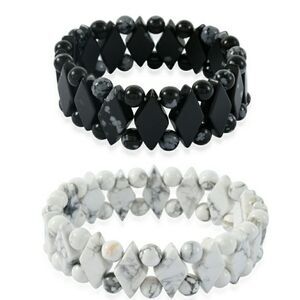 288 ctw White Howlite and Snow Flake Obsidian set of 2 stretch bracelets