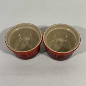 Set of 2 LE CREUSET France 3" Ribbed Ramekins Baking Cups Red.