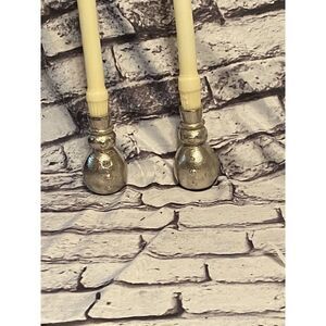 Set of 2 Silver Snowmen Taper Candle Holders