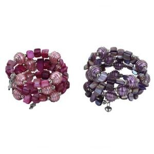 Set of 2 Super Cute and Fun, Purple and Pink Square and Rounded Beaded Stretch Wrap Bracelets.
