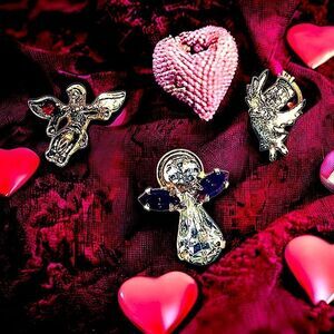 Adorable set of 3 angels pins. The larger one is 3/4” L with multiple crystals, the other 2 pins are 1/2”. Excellent condition, shipped in gift box. (Pb)