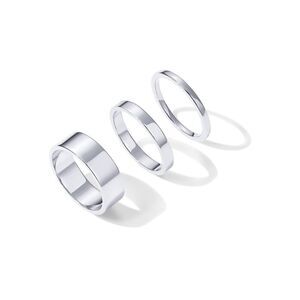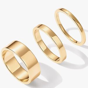 This stackable ring set features three bands with widths measuring at 1.5mm, 3mm, and 6.5mm making it a perfect set to stack with your favorite rings or worn alone.
