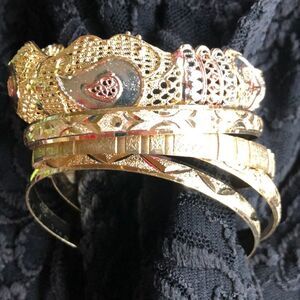 5 Bangle Bracelets Not sure the material...Gold plated? Brass?