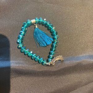 Six beautiful blue and green beaded bracelets - sold as a group. (FL blue)