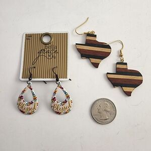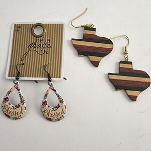 Set of boutique earrings wooden Texas earrings and Teardrop Blessed earrings