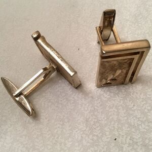Two sets of goldtone men’s cufflinks are included as this item. Both are goldtone all over and feature classic designs. One is polished and the other set is brushed goldtone with engraving. $8 for sets of cufflinks or bundle 3 items of same price for $15 and save.