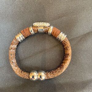 Seven leather bracelets - leftover retail inventory from a spa that we closed. One of them is a ja wrap and some of them have magnetic closures.