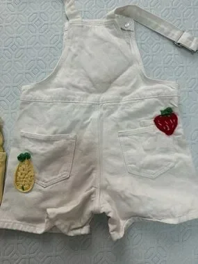 Yellow overalls Gap size 4 fits 3 better. 2 old navy tops. White zara overalls. No signs-of wear on overalls barely used .