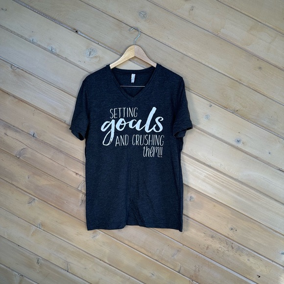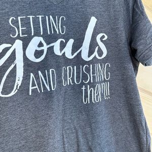 Women’s Dark Grey with White Print Graphic Tee “Setting Goals and Crushing Them” size Large