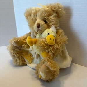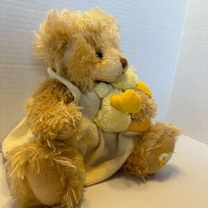 This cute bear is from the 2006 Bady Duck Collection. She is a tan bear and she stands at 15 inches tall. She comes in a cute soft yellow dress along with a matching bow on her head. Along with her cute duck themed outfit she comes with her duck friend that she is holding on to. She is fully jointed and posable. She is a must have for any collector.