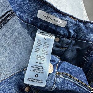 Seven 7 1964 Weekend Denim Shorts Raw Hem Mid Rise Womens Blue Size 12