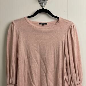 Seven7For All Mankind M pink bishop sleeve blouse top barbiecore minimal basic