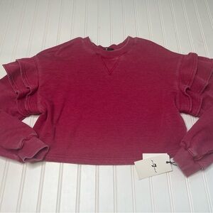 Seven 7 For All Mankind Women's Red Sweatshirt Cropped Ruffle Sleeve Small NEW