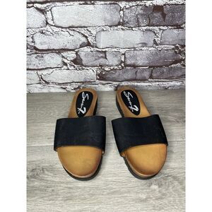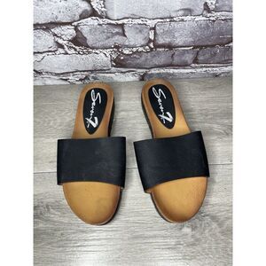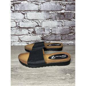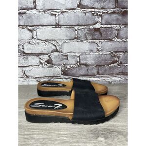 Seven 7 For All Mankind Pearl Black Leather Vegan Slides Sandals Women 8M US/39