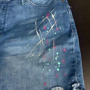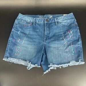 Seven 7 Jean Shorts Splatter Paint Plus Size 14 Women's Raw Hem